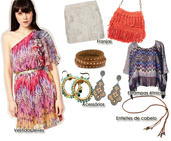– Roupas leves,descontraídas : saias fluidas ,batas, tranças , vestidões, algumas peças de crochê,colete…se jogue!
